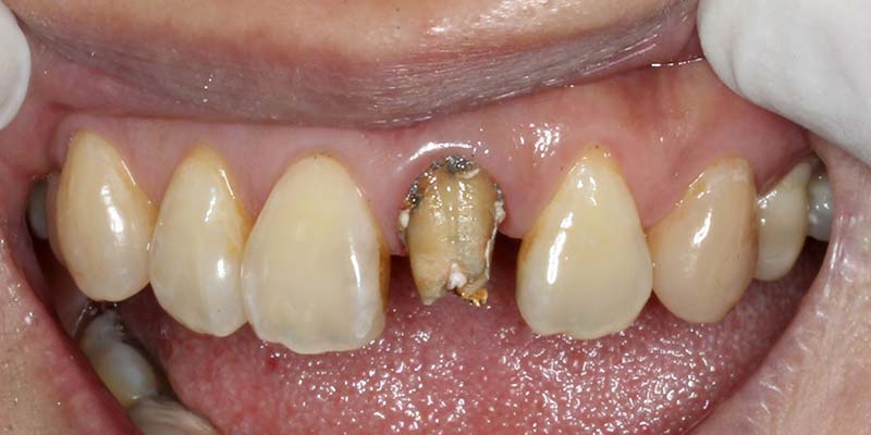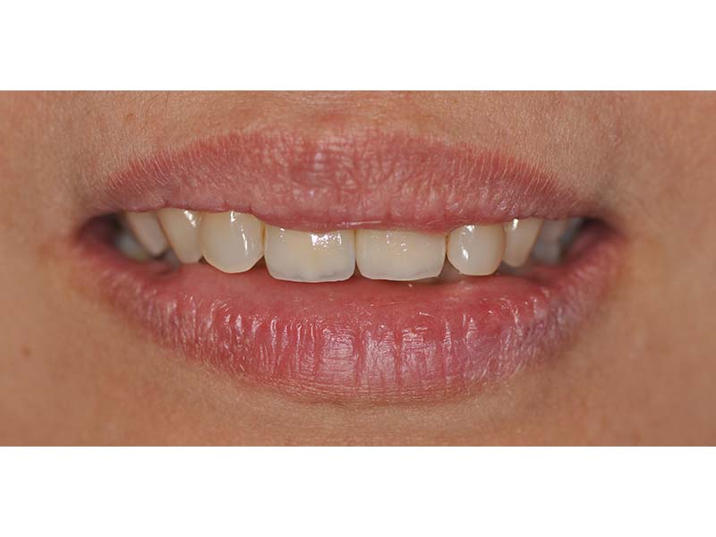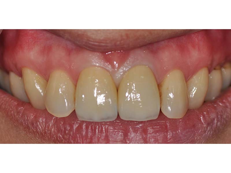 李小姐長期以來,牙齦刷牙都會流血,並且門牙假牙有一條黑線,在同事面前都不敢笑。診斷為 : 牙周病合併舊假牙邊緣銹蝕,先拆除舊假牙,並輔以雷射牙周治療後,並修復牙齦染色後,以3MLAVA全瓷牙冠,恢復美觀,從此之後李小姐就可以開懷大笑了。