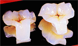 圖2較大的蛀洞可使用3D齒雕,保存較多牙齒結構,並提供足夠強度的支撐,恢復牙齒型態與功能。