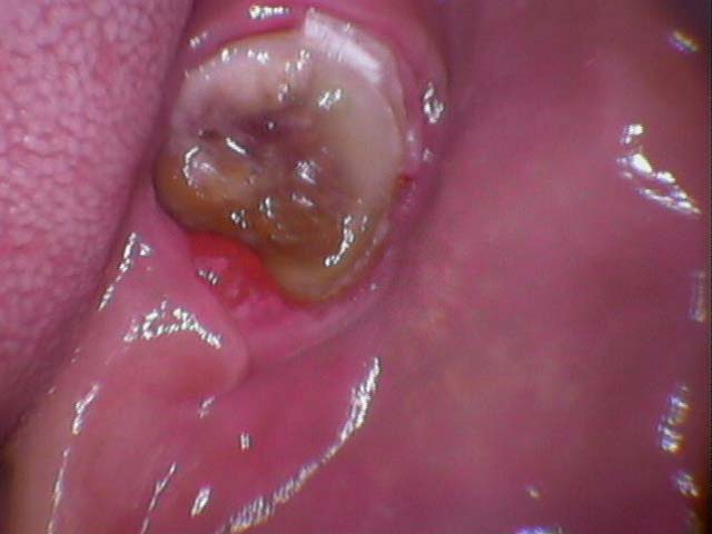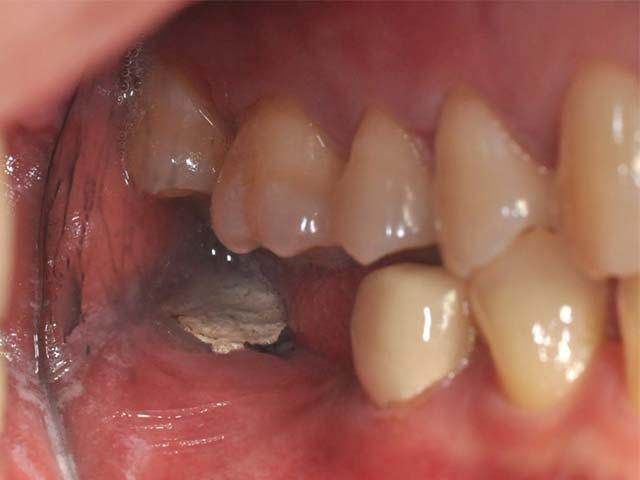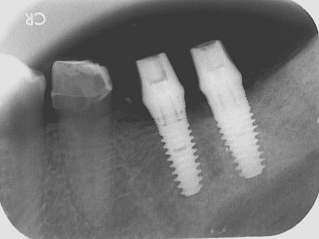 牙橋嚴重蛀牙,即拔即種,避免二次傷口 首頁 案例分享 人工植牙 牙橋嚴重蛀牙,即拔即種,避免二次傷口 多年前製作之牙橋,因為二度齲齒,導致支台齒蛀蝕,而需重新製作 牙橋支臺齒嚴重蛀牙 STEP1.拔除殘根並植入兩根植牙 STEP2.骨粉填補缺損骨頭缺陷 STEP3.三個月後,準備製作正式假牙 STEP4.正式假牙完成